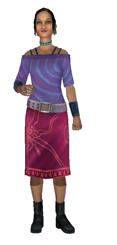 Proprietor of Alien The Cat, a technology store in Casablanca, Olivia (or simply 'Liv') is Zoë Castillo's "best friend". Like the Castillos, the Abazas, and Casablanca itself, Olivia has a Spanish name, not to mention her frequent use of the greeting "Hola!". This indicates the close ties the North African city has with the Iberian Peninsula. Her facial markings are reminiscent of those favoured by Berber women, and she may have a mixed ancestry. She also displays at least a basic understanding of Amharic, as she greets her Ethiopian contact in his native language.